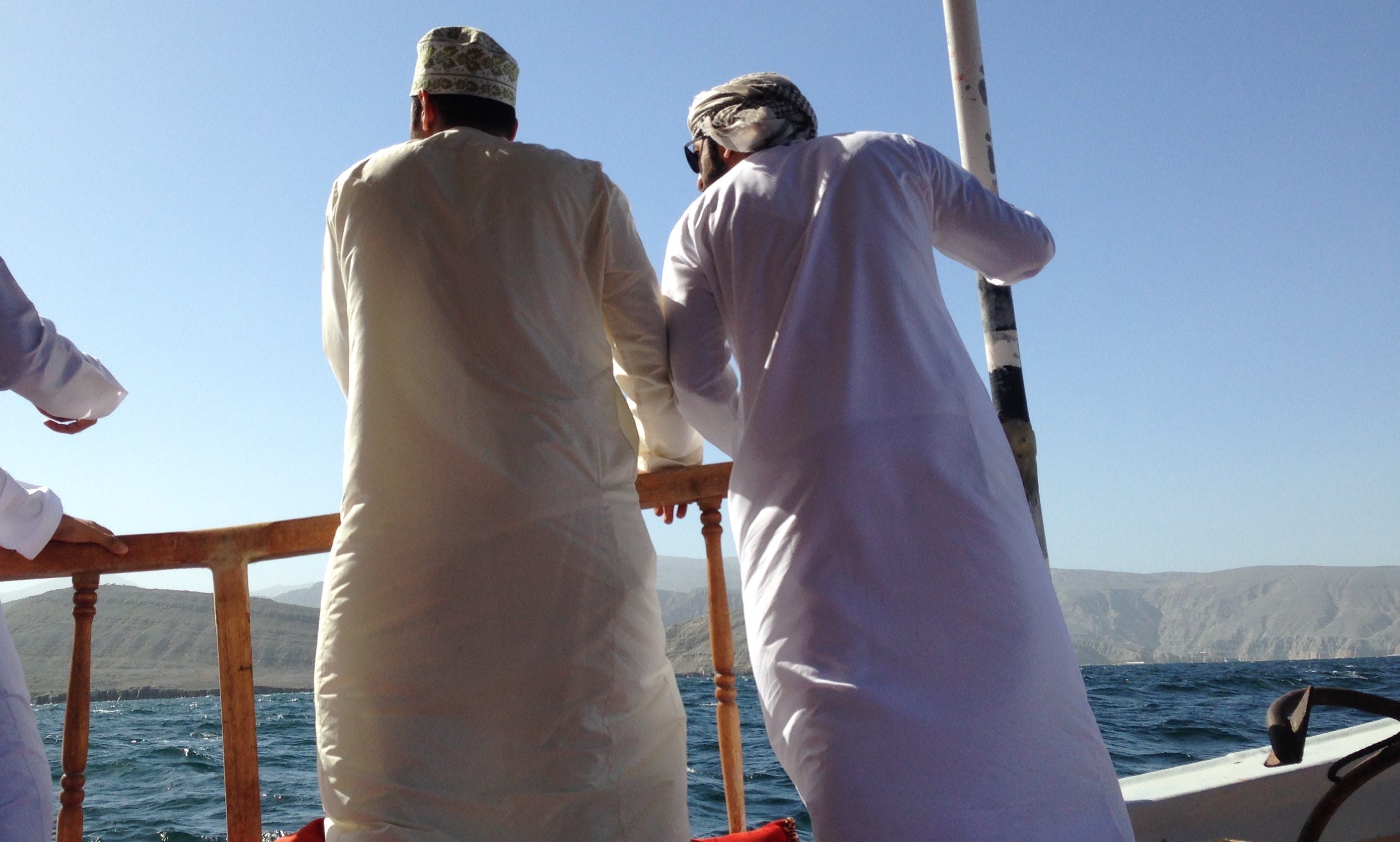 That morning, I joined a group of Omanis from Nizwa, a few hours south of Muscat, who had come to Musandam to see the fjords. They were bundled up in jackets and winter hats, bravely facing the 65-degree temperatures. A Khasabi onboard told me he was showing his Nizwi friends around. We laughed as our wooden boat hit rough currents, creaking and moaning in the waves.