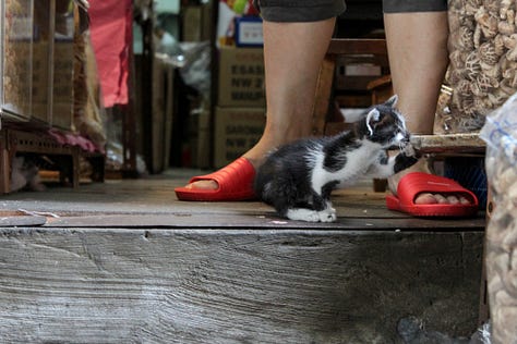 The city was a feast for the eyes. We visited Chungking Mansions, the squalid shopping center featured in Wong Kar-wai’s 1994 film “Chunking Express,” and I watched from above while drunk expats in red soccer jerseys spilled out of Lan Kwai Fong bars and climbed atop dumpsters. In markets, vendors sold frogs, pigs’ feet, mangosteens and tiny turtles. People assumed I spoke Cantonese, and shaking my head, I felt very American. My friend berated me for taking photos of the Filipina domestic helpers who gathered in Central on Sunday, their day off. Years later, during the pandemic, I watched demonstrators march down those same streets, protesting China’s crackdown on Hong Kong’s freedoms.