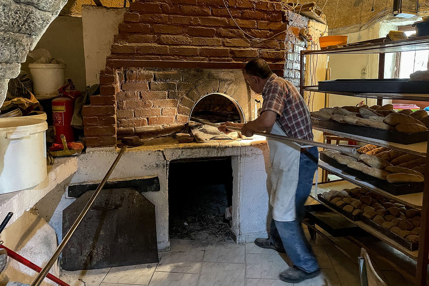 We followed the seductive smell of baking bread to the wood-fired oven of Ioannis Apostolis. He once worked as a sailor—not unusual on this island, which played an outsized role in the development of Greece’s shipping industry—and then at his brother’s restaurant in Indianapolis before returning to Chios to open a bakery. We bought a sourdough loaf, and he gave us a bag of crispy rusks he had made by double-baking the day’s unsold bread.