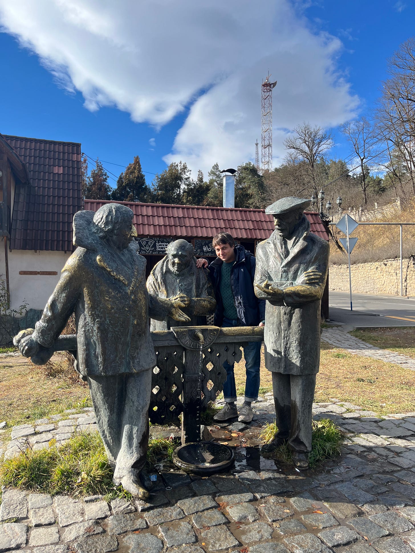 The semi-serious designation comes from a 1977 Soviet buddy comedy named “Mimino,” in which a truck driver boasts that Dilijan’s spring water is second-best only to San Francisco’s (home to a large Armenian diaspora). The movie’s widely quoted joke has developed into national myth; a monument commemorating the film now stands in the town square, with sculptures of the protagonists filling glasses from a flowing fountain.