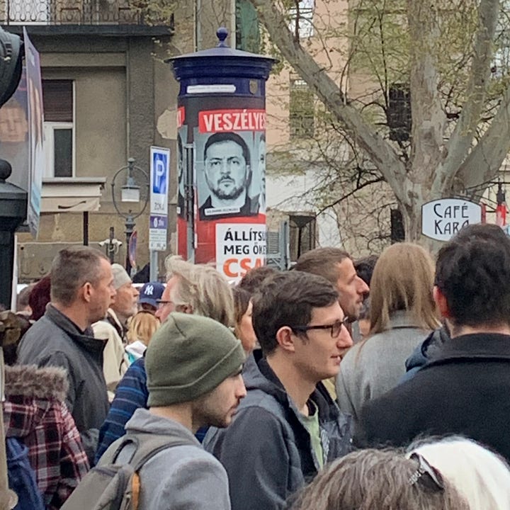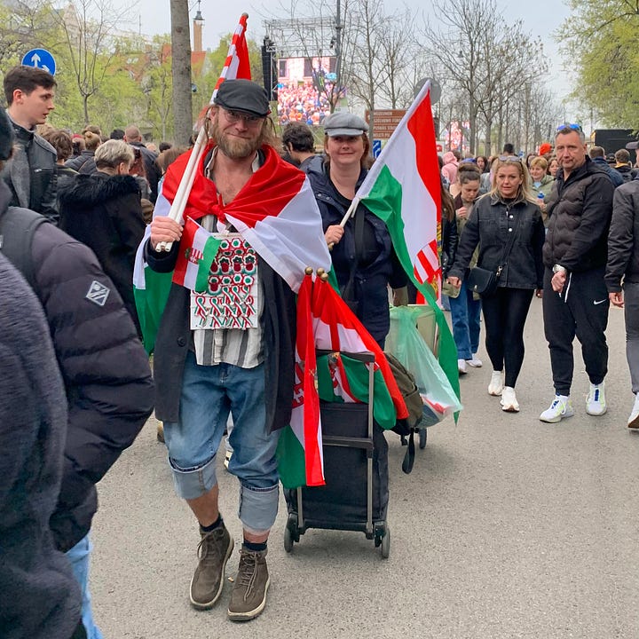 On Friday night, musicians rallying the youth vote led chants of “Ruszkik Haza!”—Russians go home. During the weekend, many made references to the Hungarian uprising against Soviet occupation in 1956, still memorialized in artworks around the city. Hungary’s rock stars exhorted young people to vote during a 7-hour concert in central Heroes’ Square.